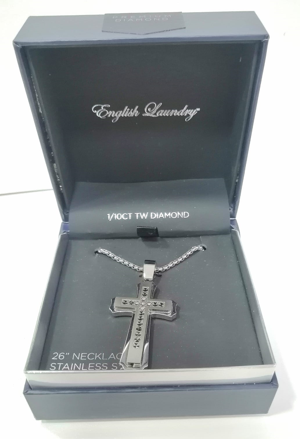 Cadena plateada de acero con cruz para varón