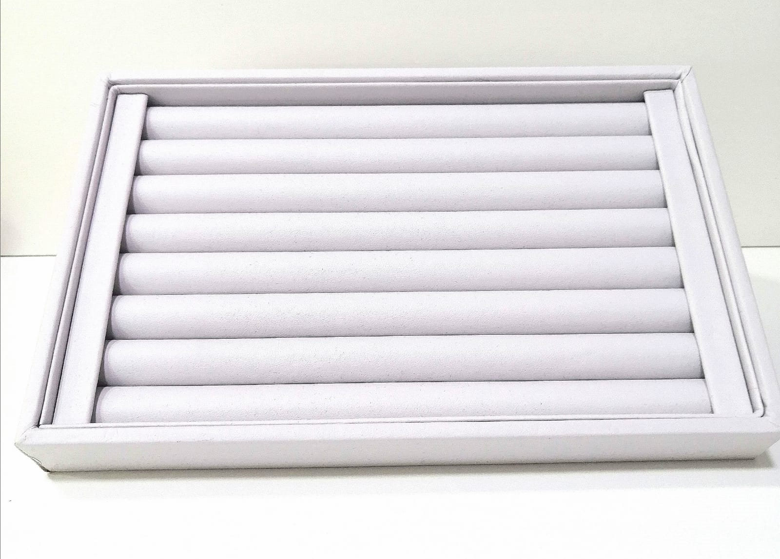 Exhibidor de cuero gris para anillos
